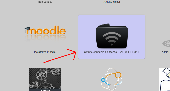 Para a obtenção das credênciais de acesso deverão ir ao servidor da escola em https://escola.esmf.pt e ir ao sistema de obtenção de credenciais WIFI/GIAE/REDE (icone WIFI preto). Deverão preencher todos os passos indicados.