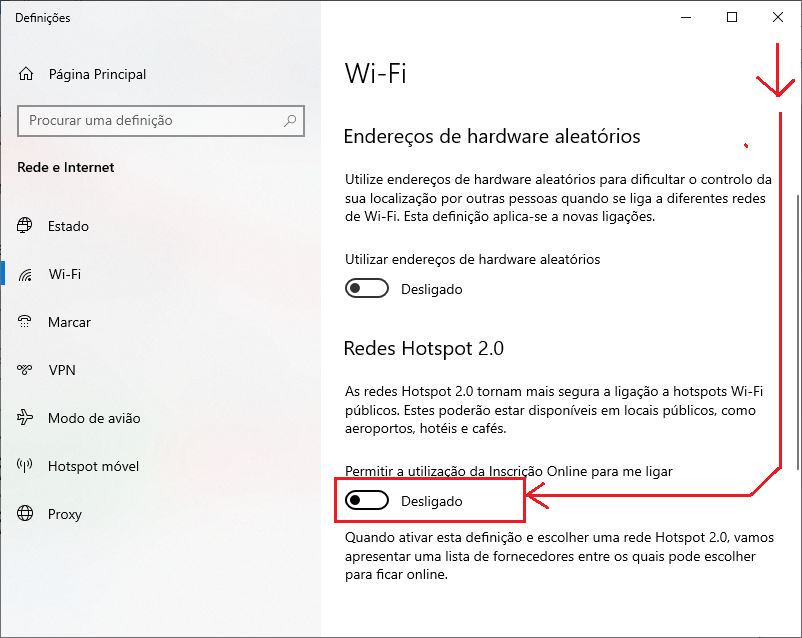 É conveniente que esteja a ser utilizado o endereço físico real da placa WIFI, ou seja desligar a opção "Utilizar endereços de hardware aleatórios" (random mac address disabled), igualmente também é conveniente desactivar a opção "Permitir a utilização de Inscrição Online para me ligar" (pelo menos na Escola Dr. Manuel Fernandes e na Escola Octávio Duarte Ferreira).